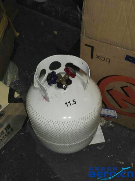近日,首都机场安保公司在货物中查获不明气体压缩罐,重量达11.5KG。