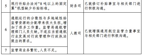 为推进解决通用航空过度监管问题,民航局开展了覆盖全行业的通用航空过度监管问题专项调研及督查整改。2018年10月,综合司将尚未完成整改的13项问题整体移交运输司,作为日常督办项目继续督查整改。截至2019年3月31日,13项问题中已完成整改1项,正在推进12项。具体工作进展见下表: