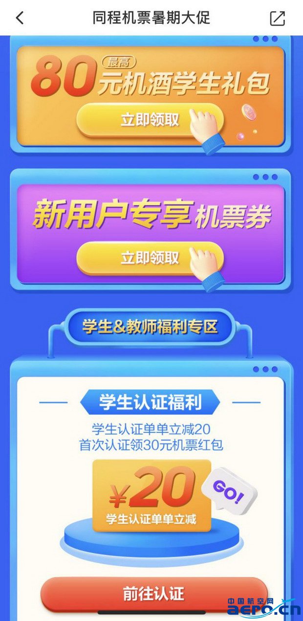 此次“飞行夏令营”活动推出了专属于学生和教师的认证福利专区,给予暑期出游的学生和教师的特殊福利。学生可在同程旅行APP上进行认证便可单单立减20元,首次认证还可领到30元机票红包。同时,教师的认证福利则是,发送关键字“教师”至【同程机票】公众号并附带教师资格证图片,审核通过后,便可获得价值50元的机票优惠券。 值得一提的是,新用户还可领取专享高达10元的优惠红包。红包叠加,暑期机票有了折上折的价格福利。想要拥有一个品质性旅行的学生党们,可以拥有专属于这个夏天的美好旅程。 除此之外,更有机票0元秒杀、大额神券限时抢购、天天抽奖等福利活动,为用户暑期的盛夏之旅增添别样的精彩。 据悉,本次“飞行夏令营”活动共分为三期,内容上覆盖礼券派送,暑期特惠航线以及开学季赢好礼等多种类型,时间上涵盖了自6月初至8月底的整个暑期。现已上线的第一期“飞行夏令营”活动将会在7月10日结束,并于7月11日上线第二期活动,更多好礼继续放送。 免责声明:市场有风险,选择需谨慎!此文仅供参考,不作买卖依据。 |