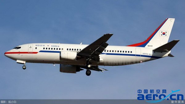 韩国政府比较节俭,这次来京使用的是737-300。这架飞机由韩国空军掌管,也是空军唯一的737专机。如果要去737飞不到的地方,韩国政府还有一架向大韩航空租赁的波音747飞机。